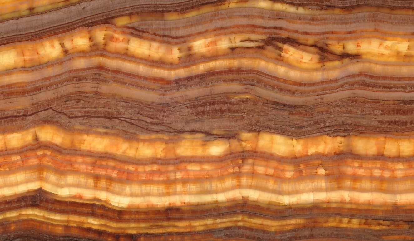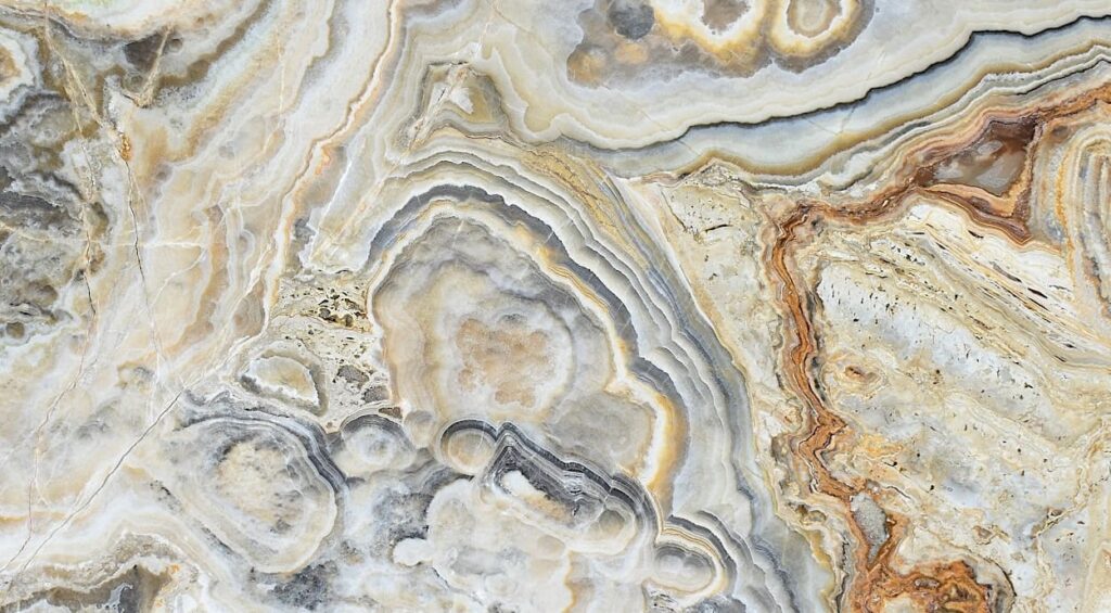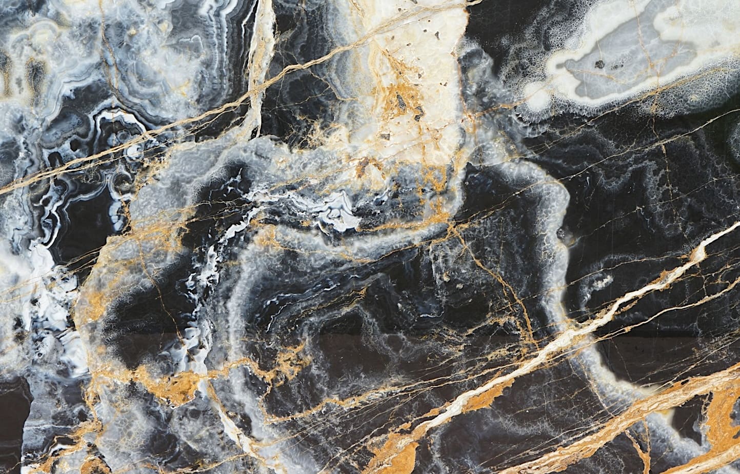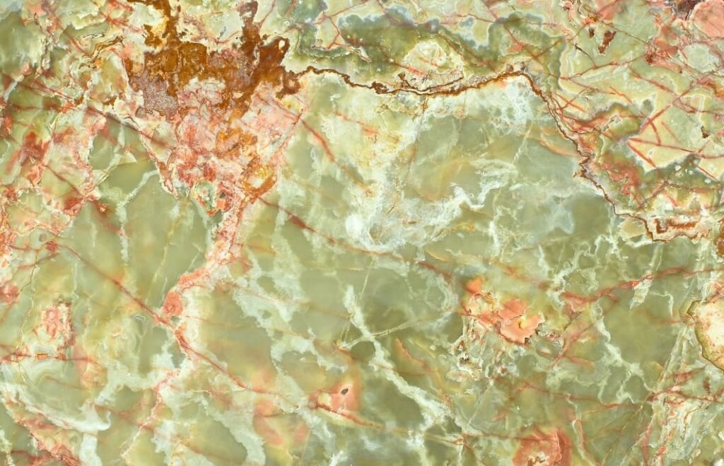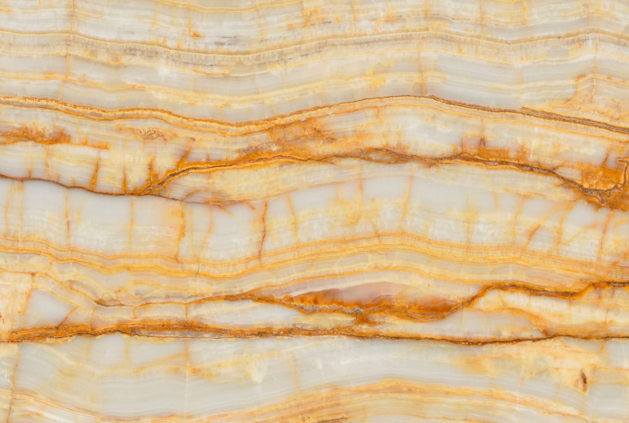 Onyx is a semi-precious stone with a translucent structure and striking multicolored layers. Due to its refined appearance, it is used in interior design to create stunning light panels, countertops, and accent pieces.