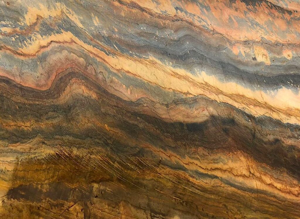 Quartzite is a natural stone formed from sandstone under high pressure and temperature, known for its strength and crystalline texture. It is popular in interior design for its durability and elegant appearance, often resembling marble.